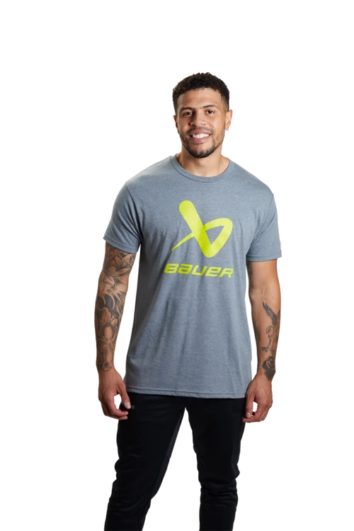 The Bauer Senior Core Lockup Short Sleeve features a polyester blended fabric with stretch, a tapered fit and a front graphic print for comfort and a stylish look.