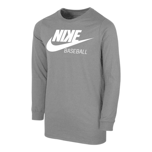 The sporty Nike Boys Baseball Futura Core Cotton Long Sleeve Tee offers all-day comfort. Made with pure cotton and double-needle stitching, it is specially designed to keep up with their active lifestyle.