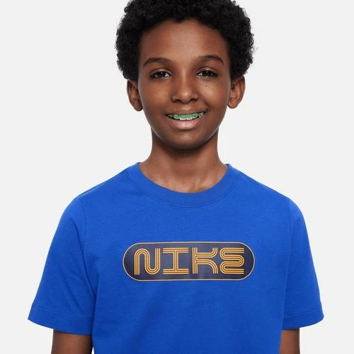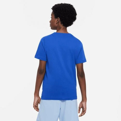 The Nike Sportswear Big Kids’ T-shirt is made from soft and breathable cotton for lightweight comfort. It has a ribbed collar with superior stretch for easy on and off.