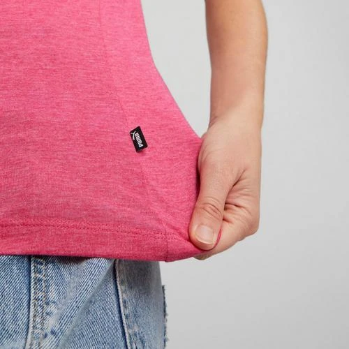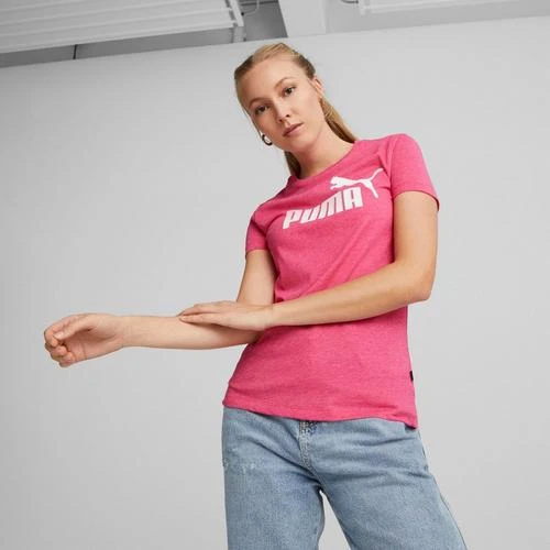 The PUMA Women’s ESS Logo Heather Tee features a classic graphic tee design with a flattering rounded hem for a chic and sporty look that’s perfect for everyday casual wear.