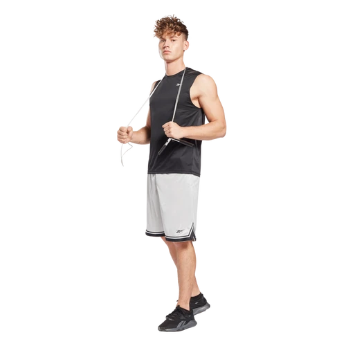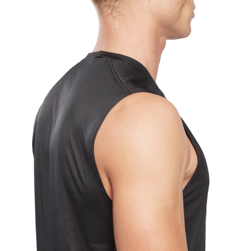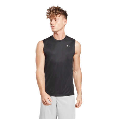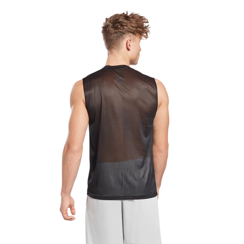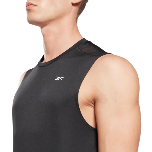 Elevate your workout intensity with this Reebok men’s sleeveless training t-shirt. Engineered with moisture-wicking fabric, it keeps you comfortably dry. Plus, the added mesh back panel ensures optimal ventilation, keeping you cool and refreshed throughout your rigorous reps.